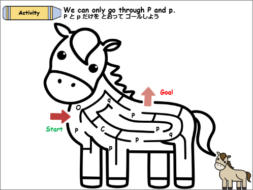線でなぞったり、点と点を結んで指定された形を作ったり、考える力を養います。英語がまだ上手に話せないお子様も、アクティビティを通して英語に触れることが可能です。