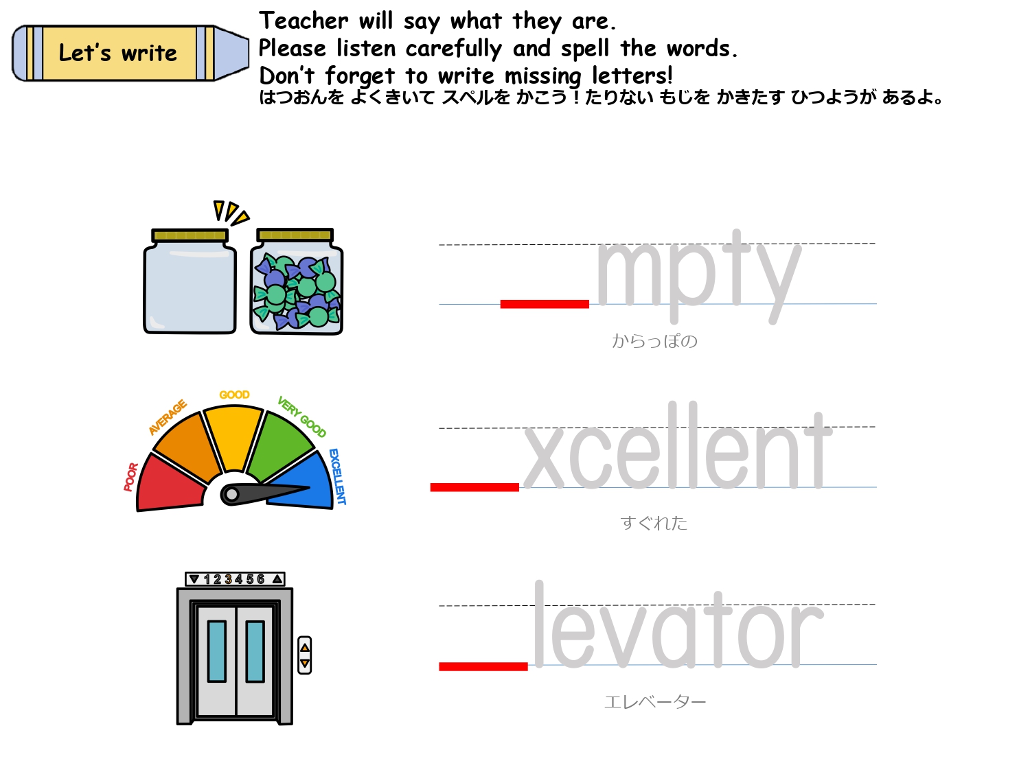 教材サンプルを見るスペルと音の規則性や、規則に当てはまらない特別な単語の読み方といった、英語の音を学ぶコースです。 耳できいた単語のスペルを推測できるようになったり、単語をぱっと見ただけで発音できるようになったりすることができます。