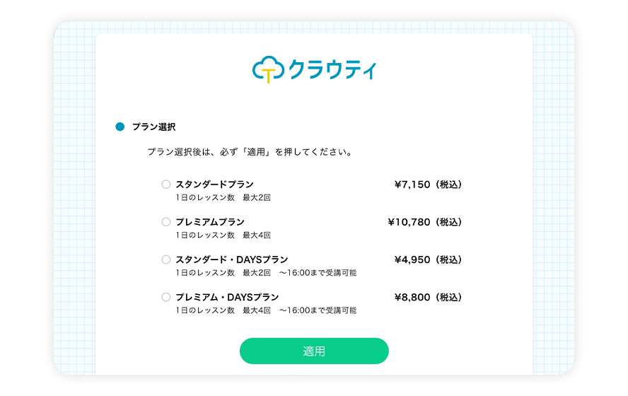 継続する場合のプランを選択してください。サービス継続をご希望でない場合は、無料期間内にトライアル終了申請をしていただく必要がございますのでご注意ください。トライアル終了申請をしていただくことで、月額利用料金の請求は発生いたしませんのでご安心ください。