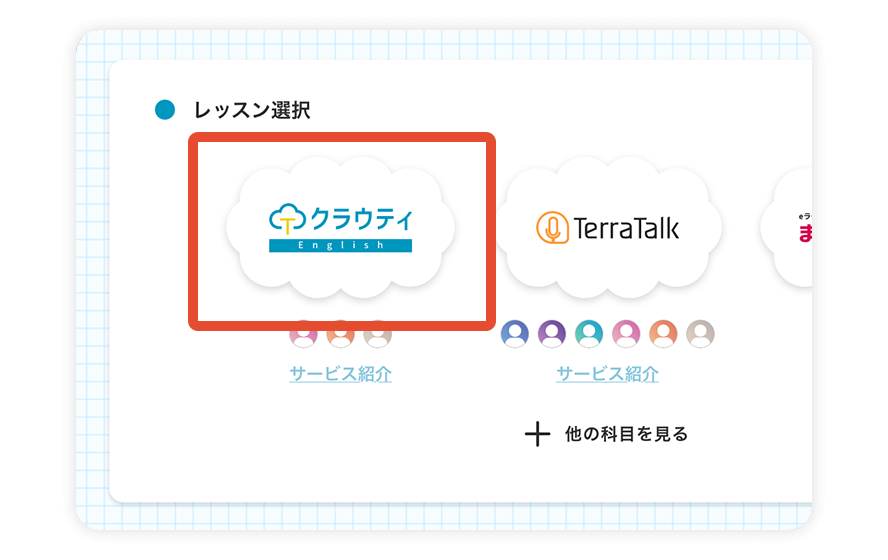 申込完了後、クラウティEnglishへアクセスできるようになります。クラウティホーム画面から、クラウティEnglishのロゴをクリックします。