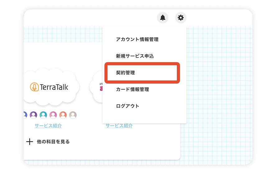 クラウティホーム画面右上の[契約管理]を選択し、クラウティEnglishの[プラン変更・休会]をクリックしプラン変更画面へお進みください。