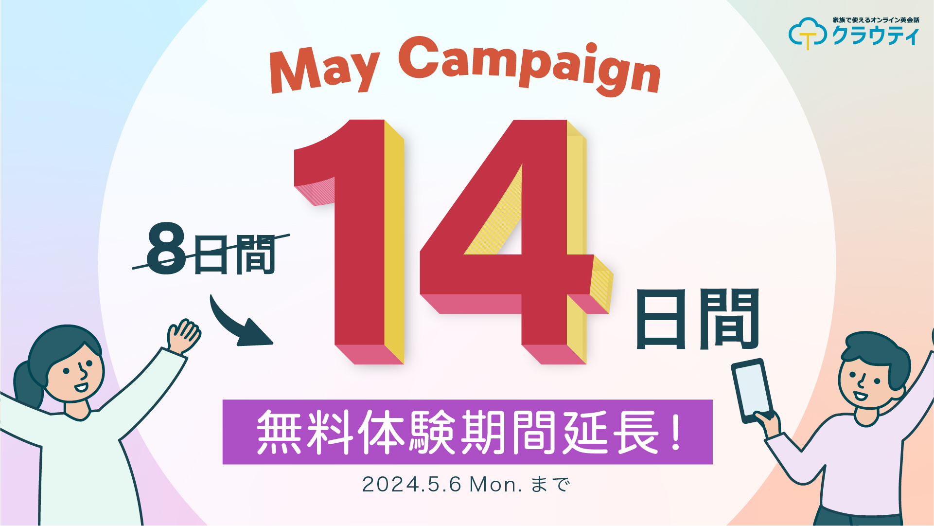 キャンペーンコードご利用で無料体験期間が8日→14日に!5月キャンペーンのご案内