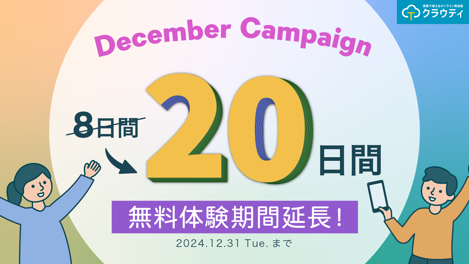 通常8日間の体験期間を20日に拡張できるキャンペーンコードをご用意致しました。