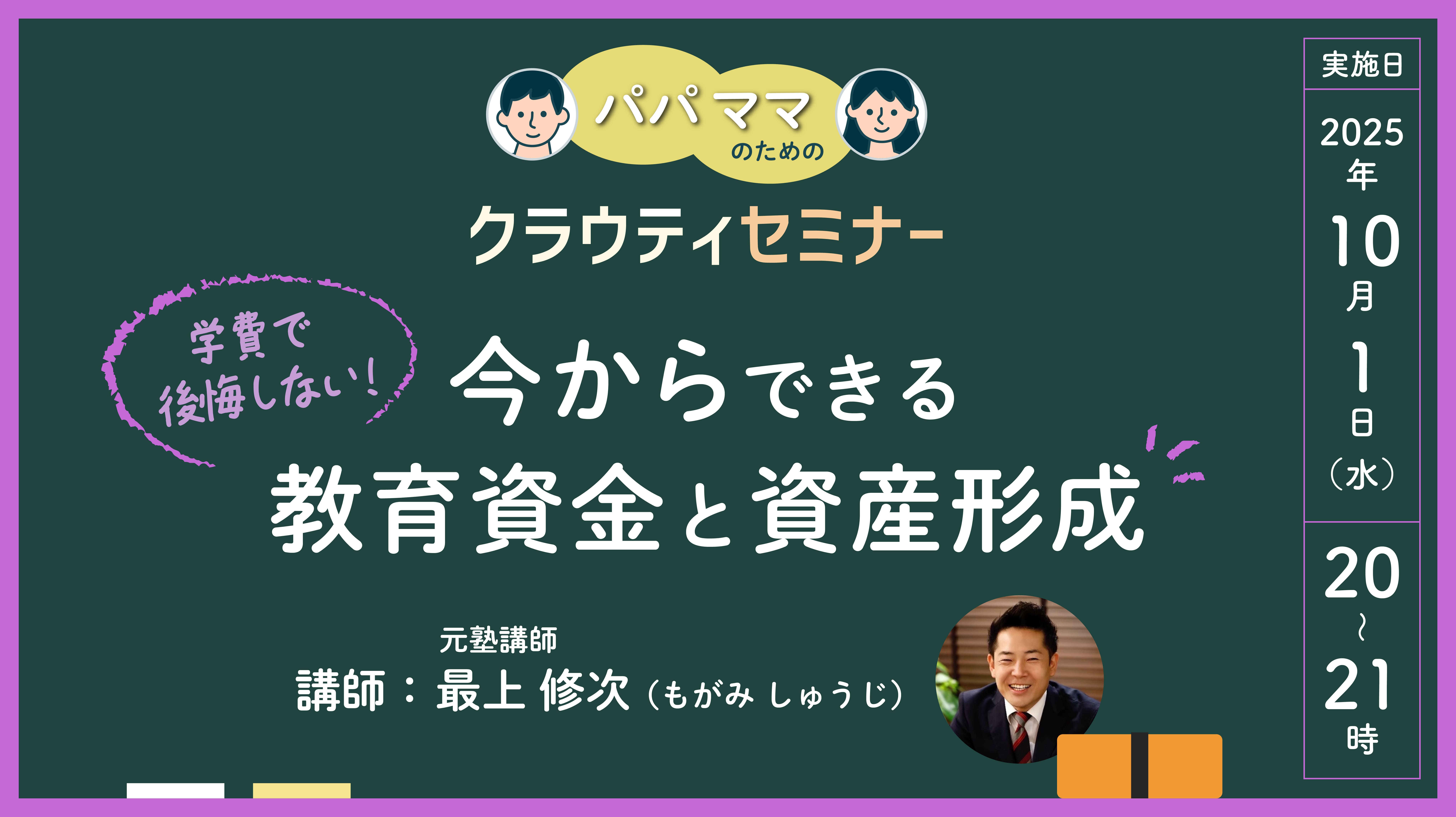 元塾講師として雑誌やTV出演経験もある、教育とお金のプロに登壇いただきます!