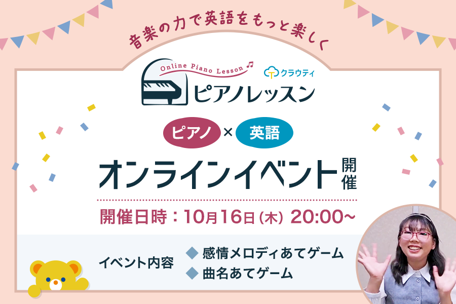 10/16(木)開催!「ピアノ×英語ゲーム」オンラインイベント♪音楽と言葉の楽しい世界へ~