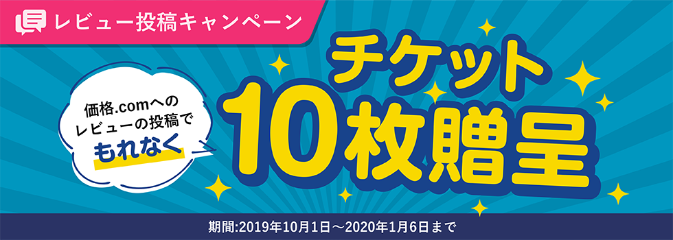 価格.com にてレビューの投稿をおこなうと、クラウティで使えるチケット10枚を贈呈するキャンペーンを開催中です!
