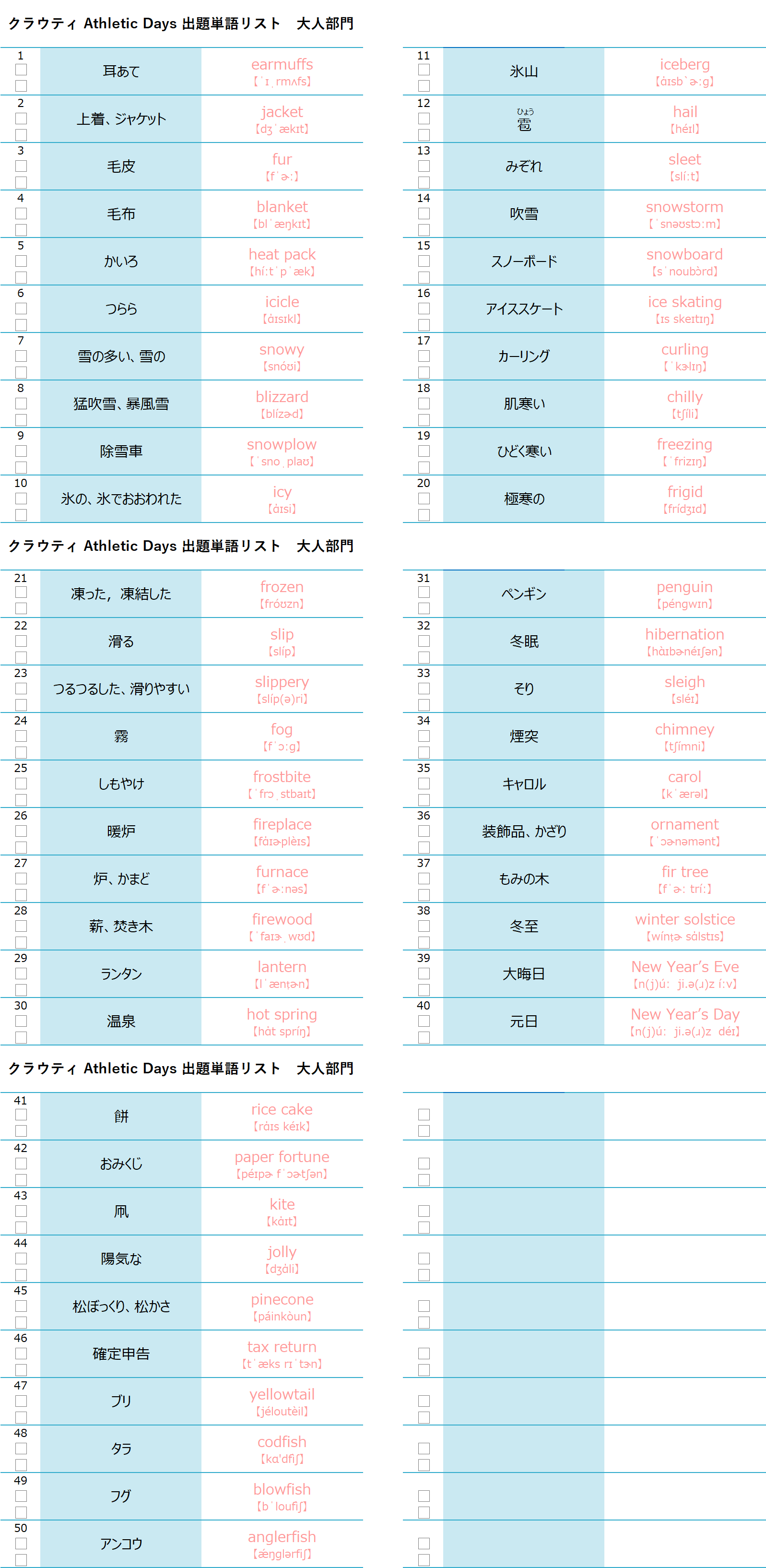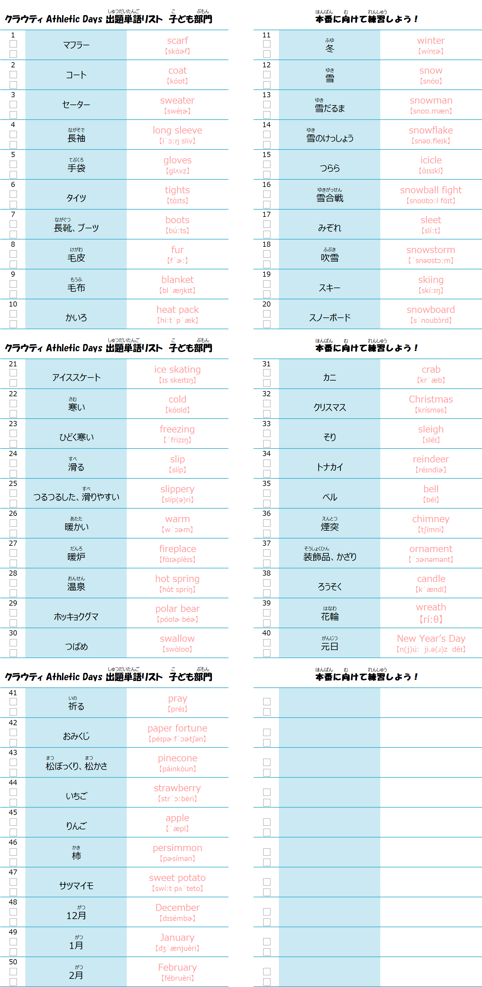 クイズでは、この単語リスト50語から25問を出題します。