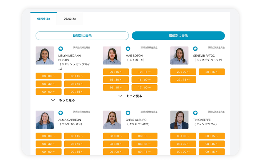 「講師を選んでも予約できる時間がない」といった事なく、スムーズに予約を進めていただけます!
