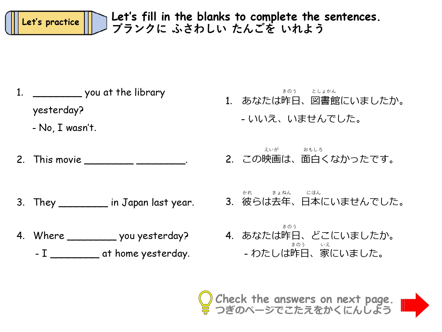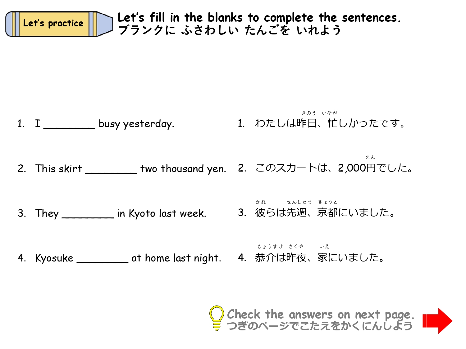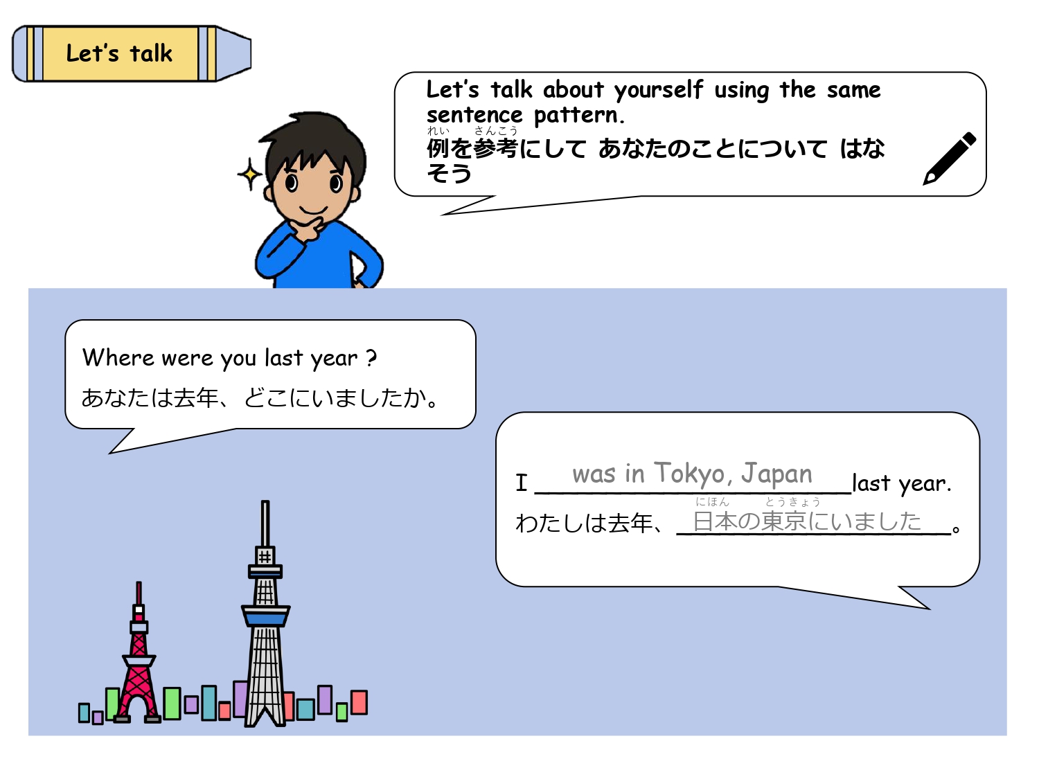 簡単な日本文化の説明や海外の方との会話でよく使うフレーズを、穴埋めやフレーズを入れ替えをしながらシチュエーション別に学習します。