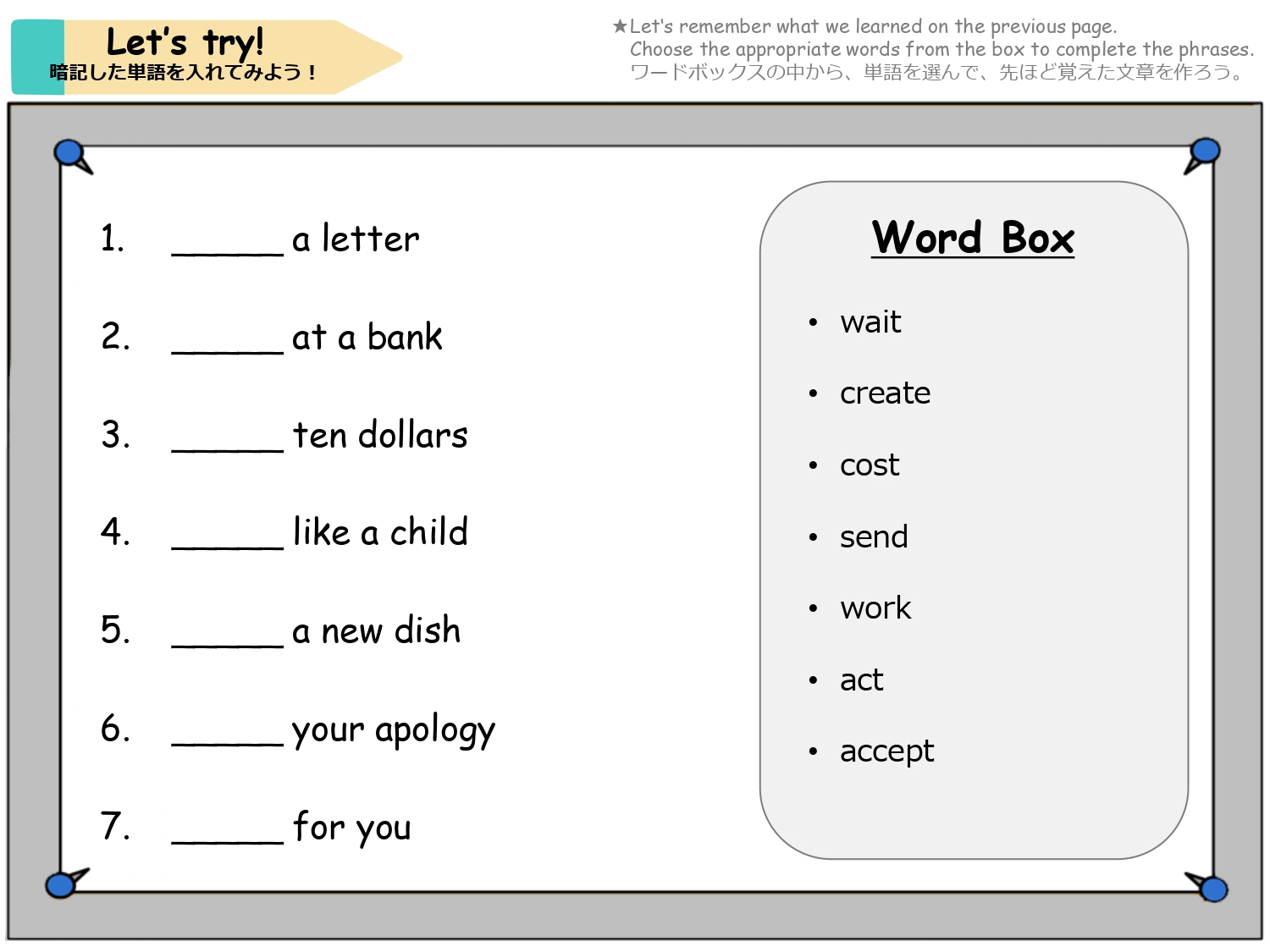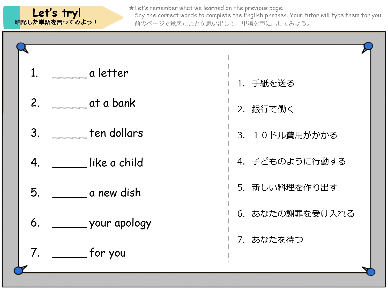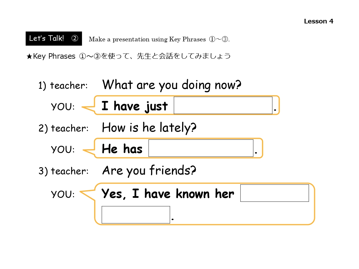 学習したフレーズを活用し、先生とのロールプレイに挑戦しましょう。