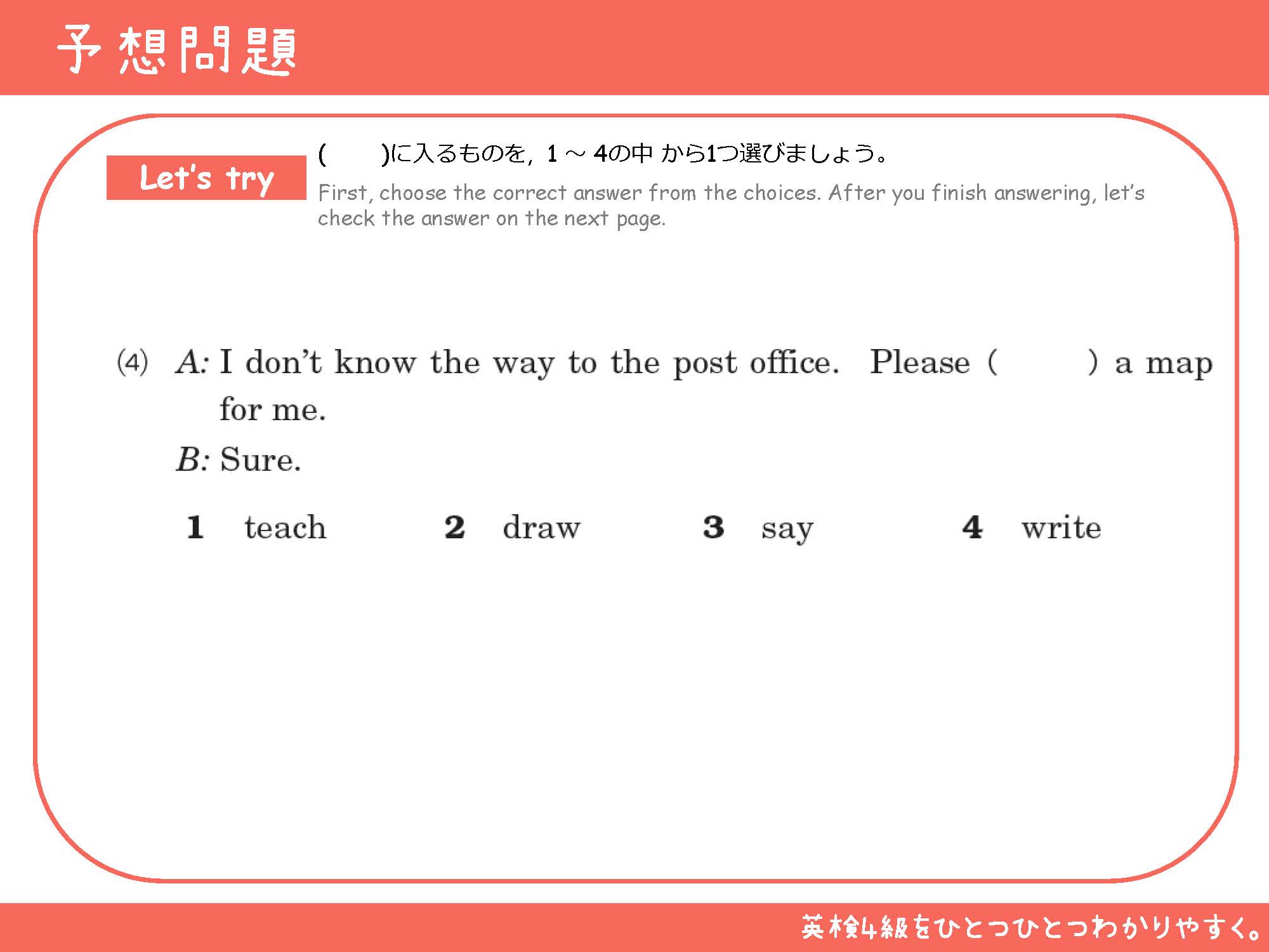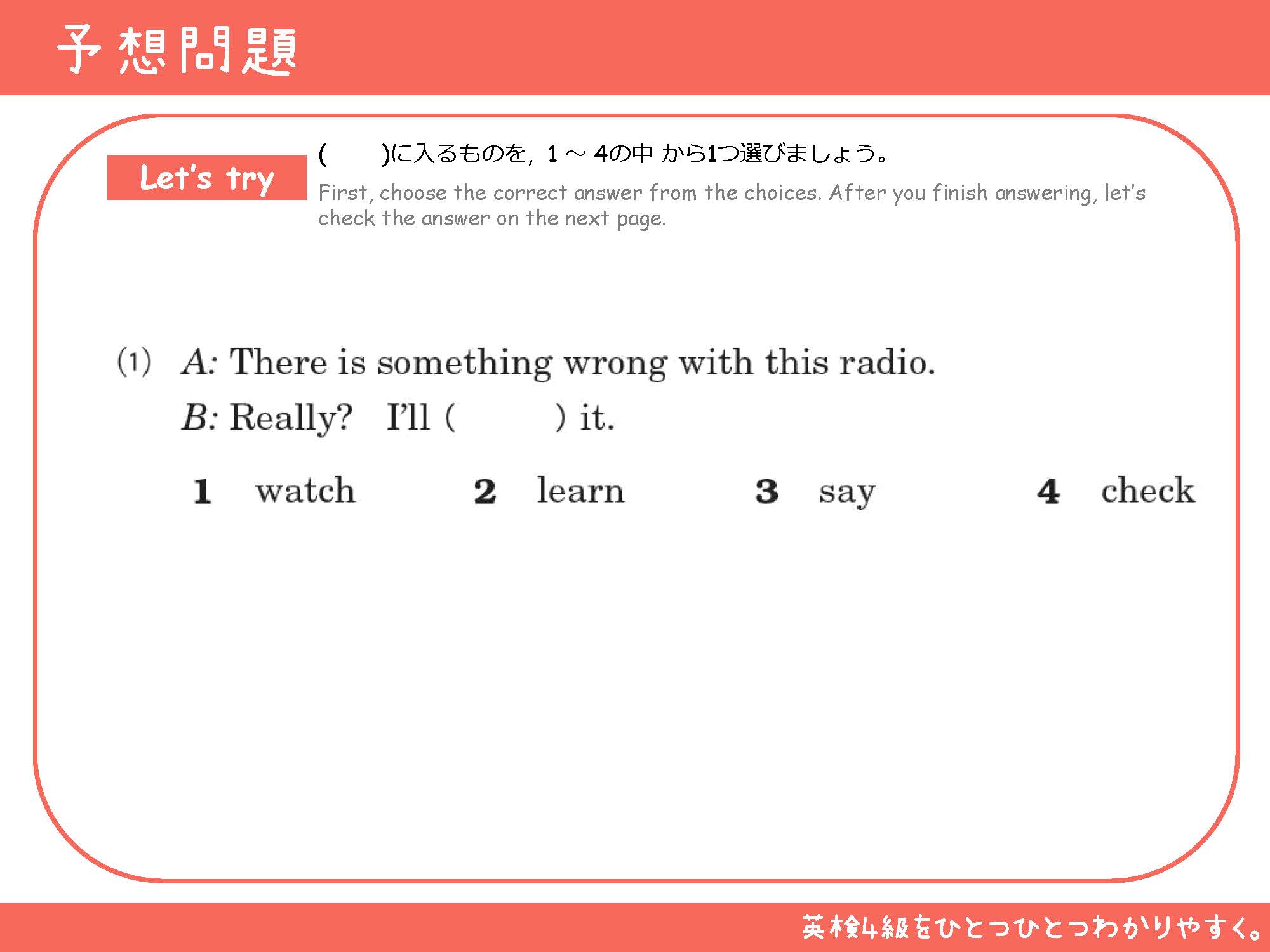 このコンテンツは、公益財団法人 日本英語検定協会の承認や推奨、その他の検討を受けたものではありません。