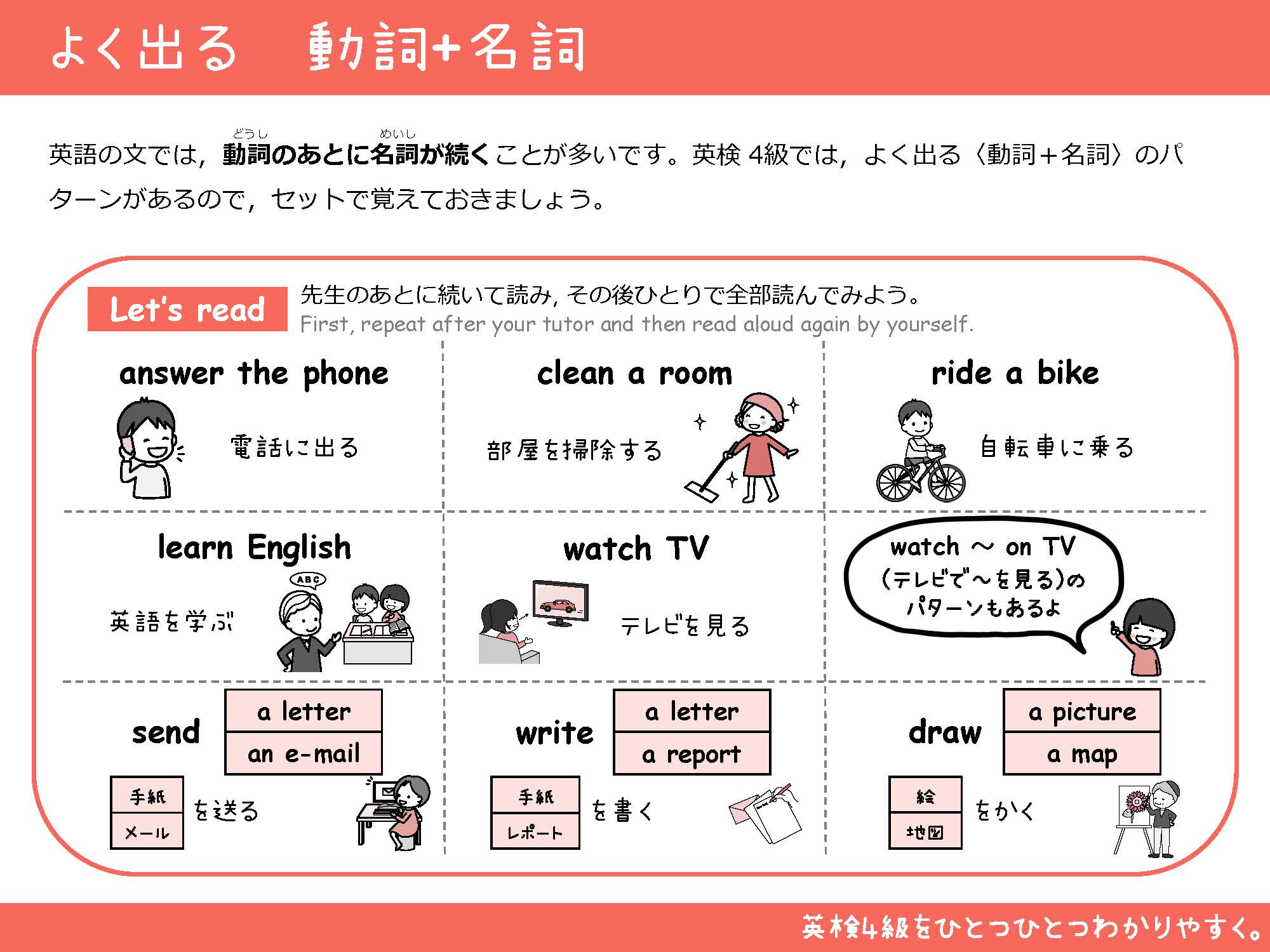 英検®で頻出する単語や熟語を順に学習しながら、英検®の一次試験対策をしたい方にお勧めの教材です。文法の基本的な形を繰り返し学習し、使える英語の基礎固めをしましょう。