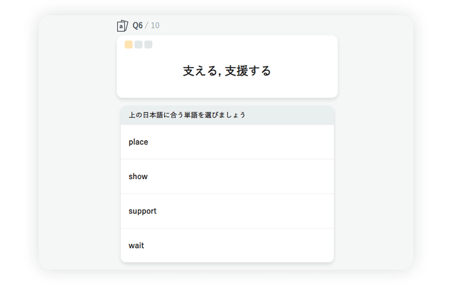 表示される「日本語」の意味を選択肢の中から選ぶ |
