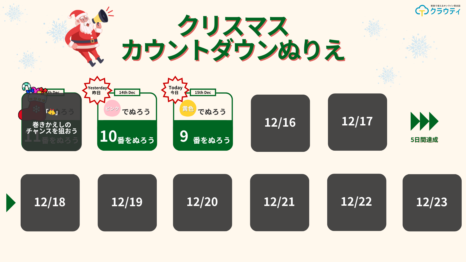 12月15日(日) クリスマス・カウントダウンぬりえ
