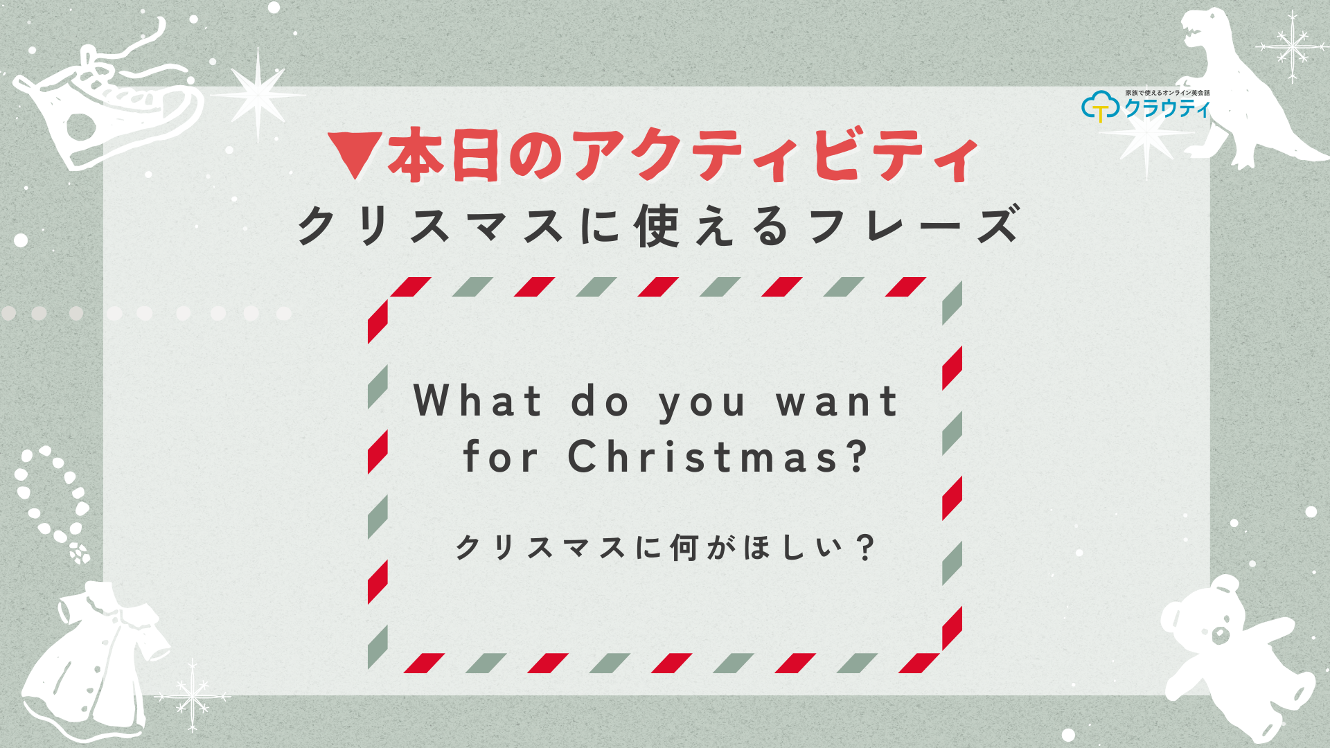 今日のアクティビティは『クリスマスに使えるフレーズ』だよ♪