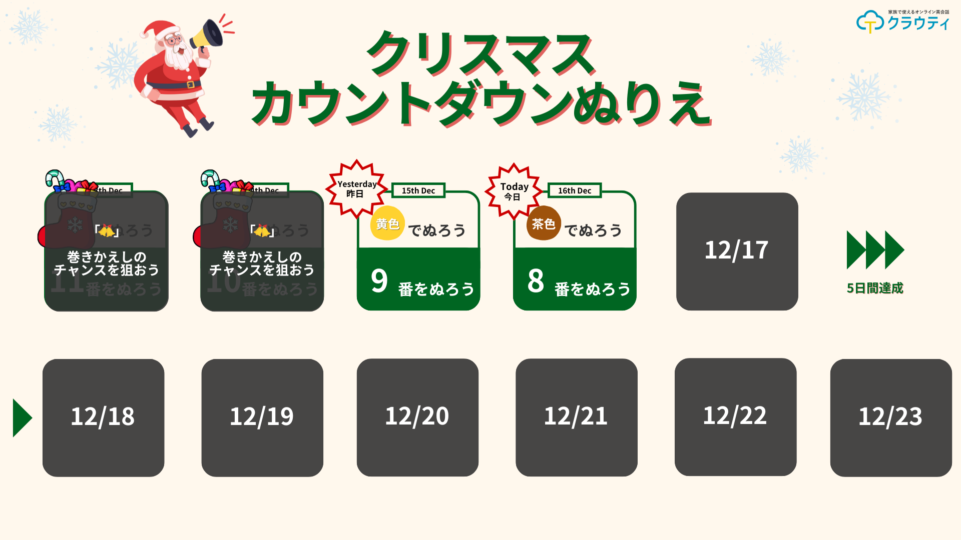 クリスマス・カウントダウンぬりえ