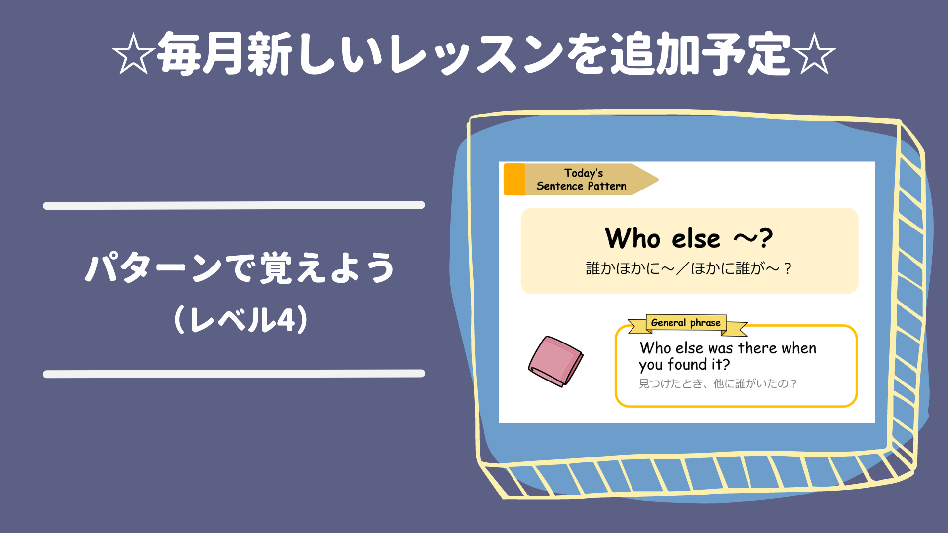 英会話で使える基本パターンをまとめたレッスンに新しいレッスンが追加されます。