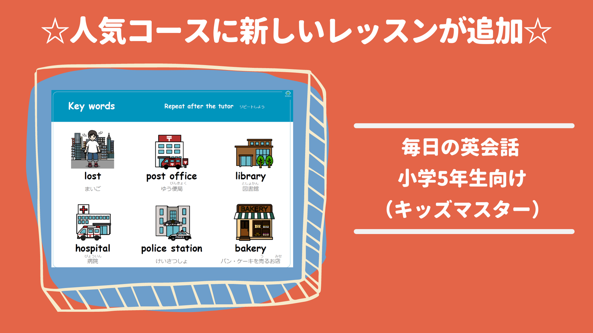 日々の生活の中の身近な単語を、簡単なフレーズを用いて会話する教材が登場!