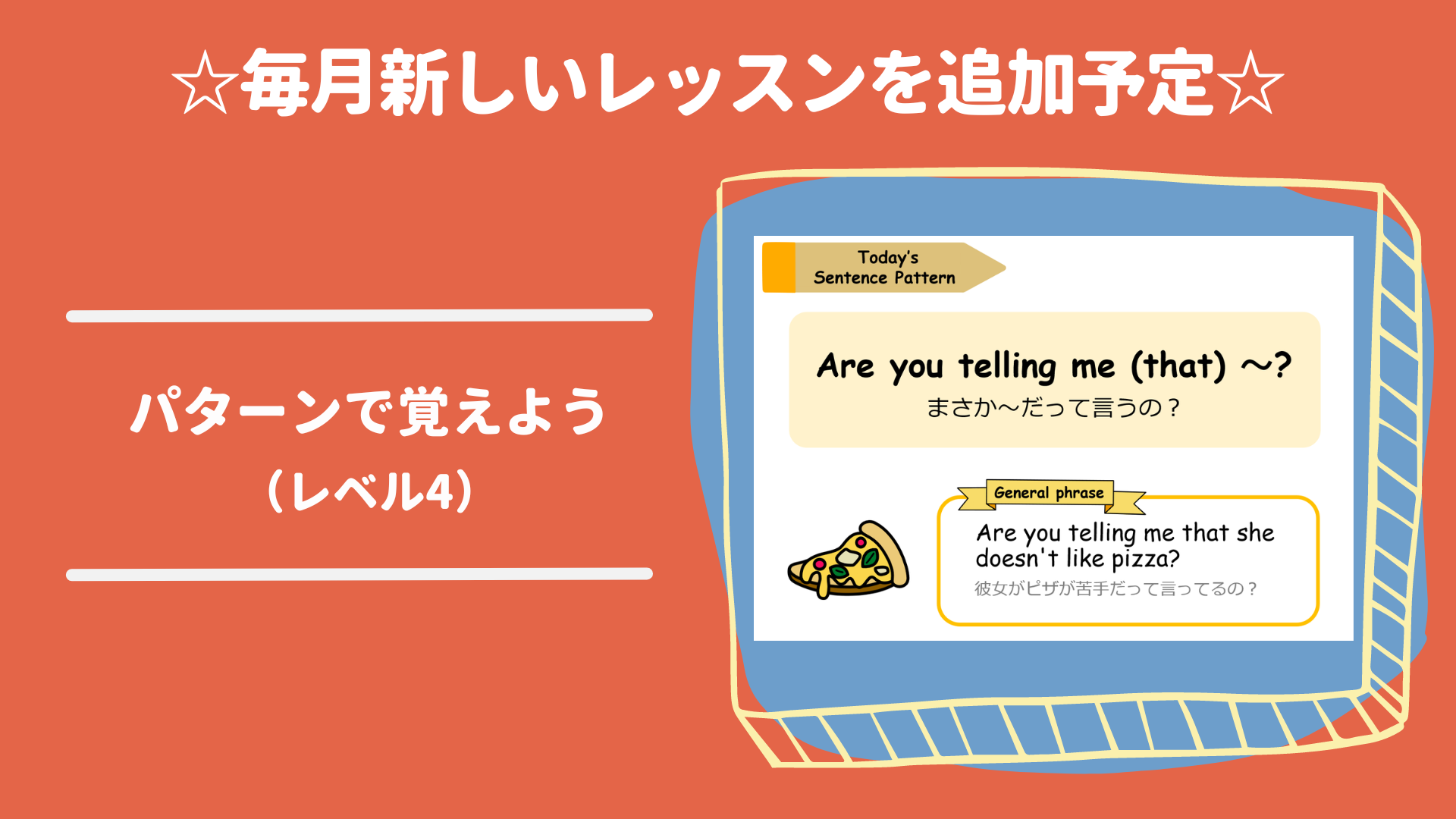英会話で使える基本パターンをまとめたレッスンに新しいレッスンが追加されます。