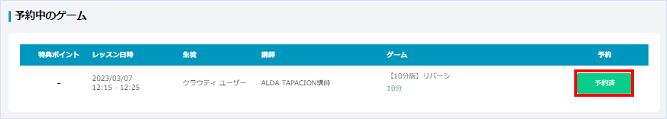 手順①:予約したレッスンの「予約済」ボタンクリック